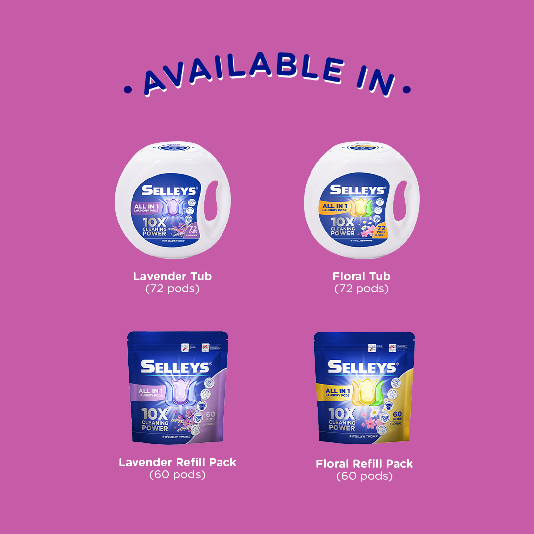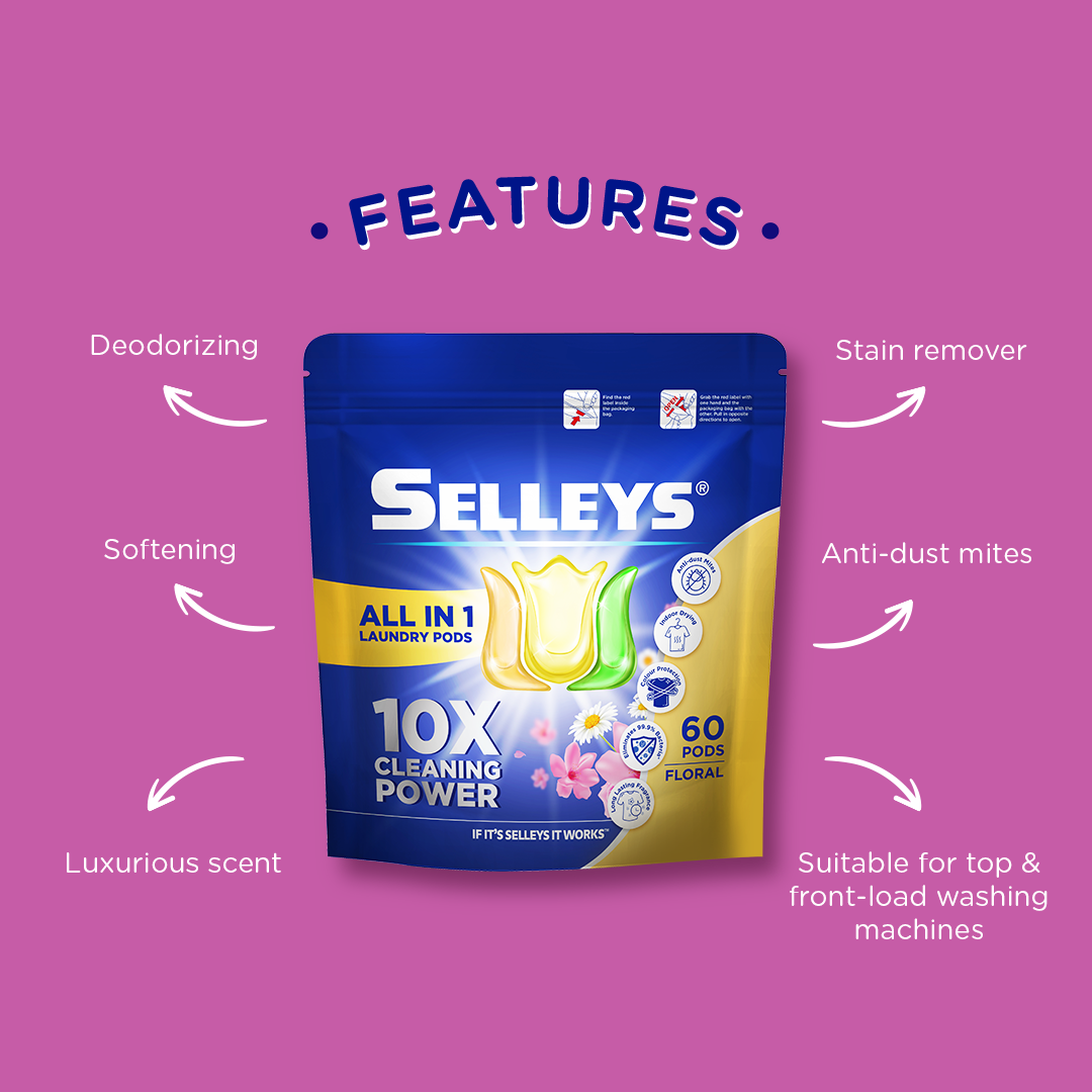 Selleys All In 1 Laundry Pods has a powerful formula designed to eliminate 99.9% of bacteria and is best in colour protection. With 10x cleaning power, colour protection, and long-lasting fragrance, our pods ensure that your garments not only look fresh but are also hygienically clean. Available in a convenient, easy to use package.