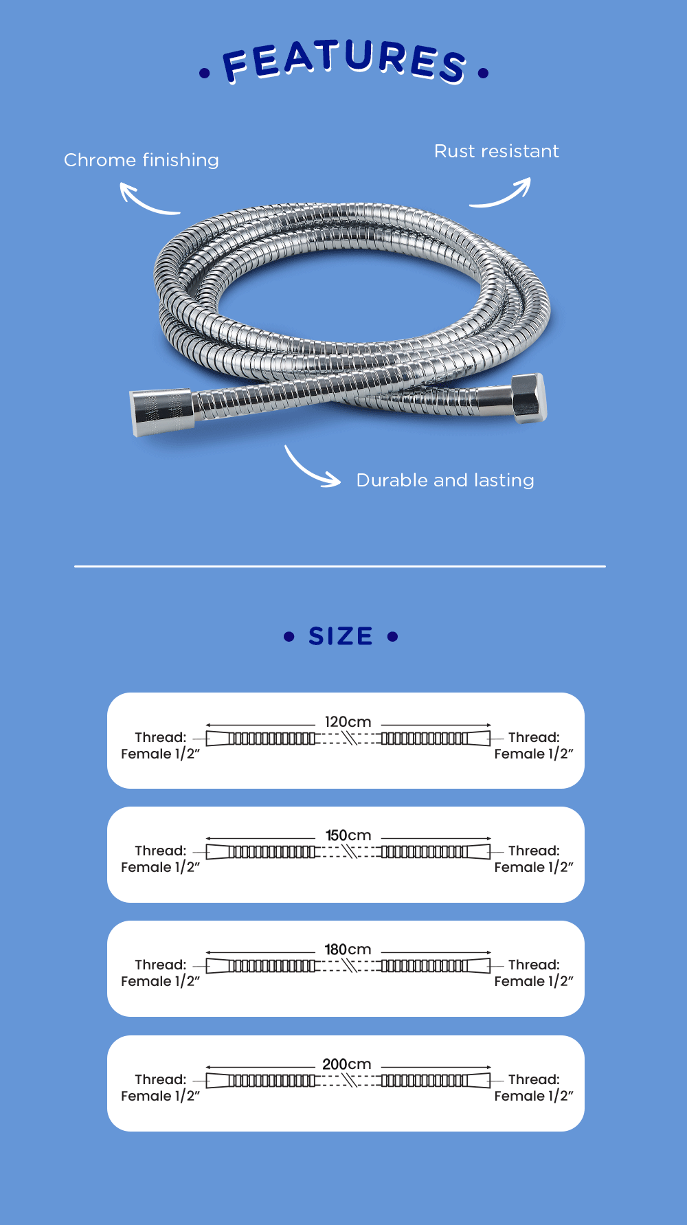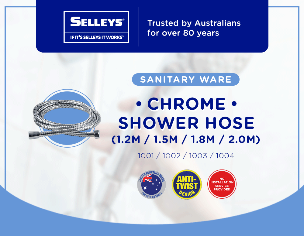 Selleys Chrome Shower Hose has a classic chrome design that is rust resistant and durable.