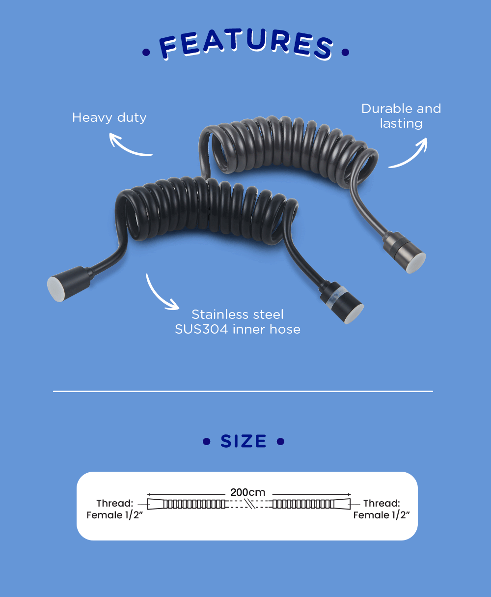 Selleys Corded Shower Hose is a heavy duty, durable hose that has a stretchable and compact design.