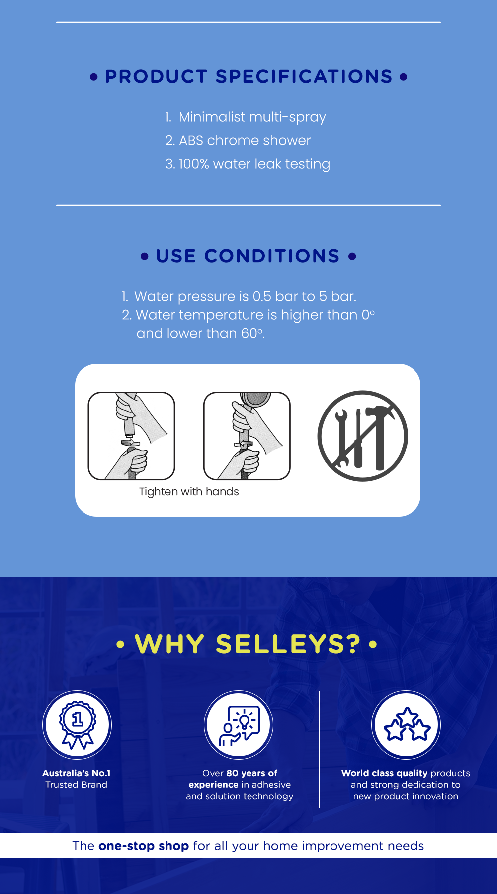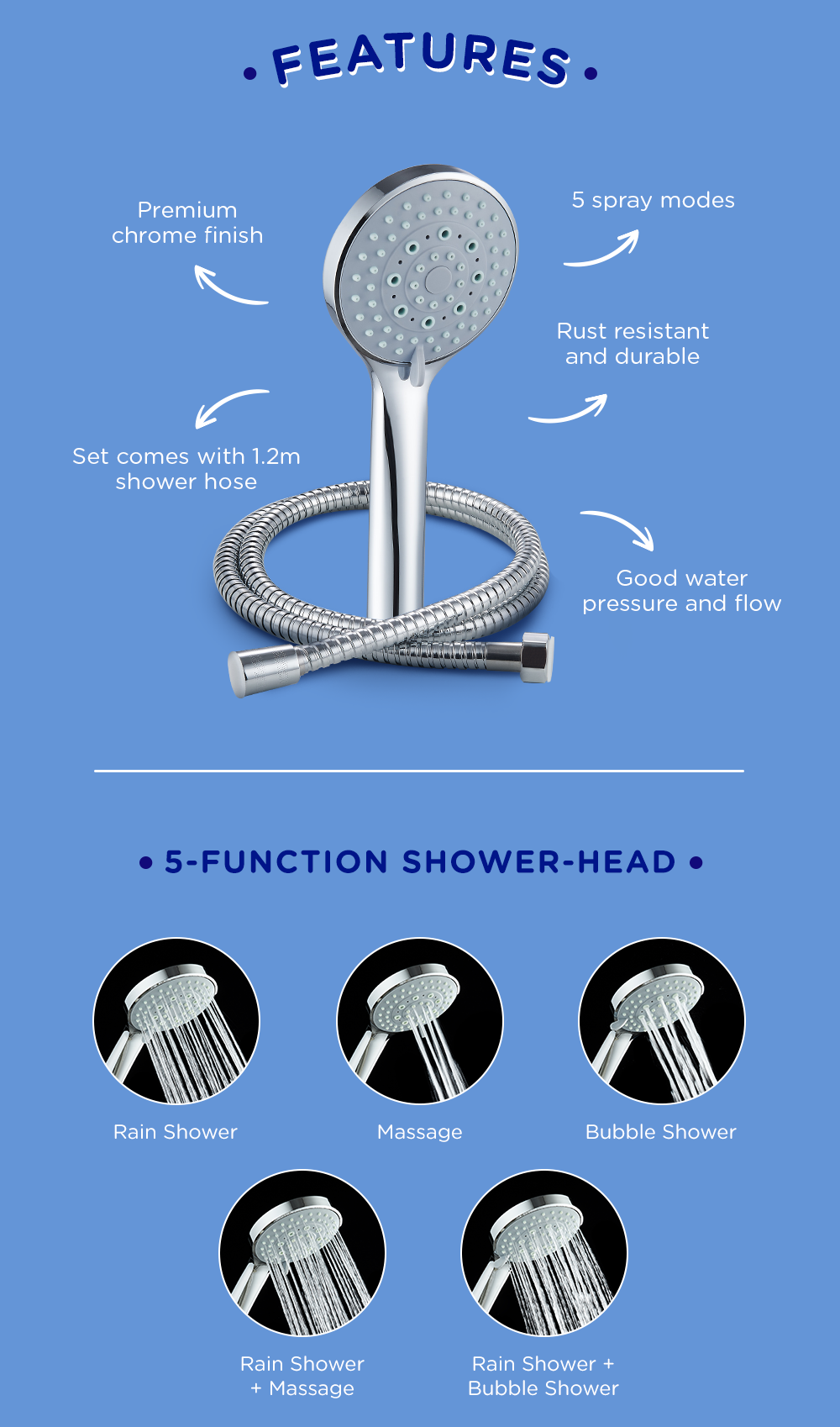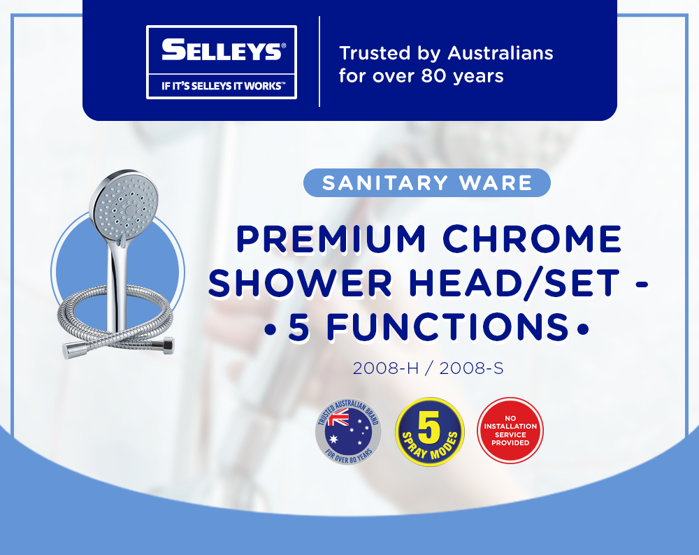 Selleys Premium Chrome Shower Head – 5 Functions is a shower head that has 5 types of spray modes and can improve water pressure.