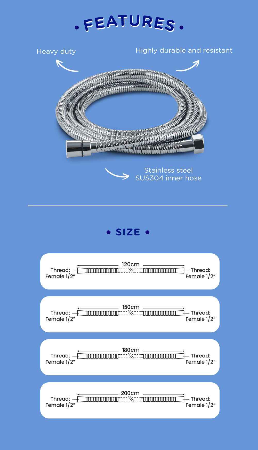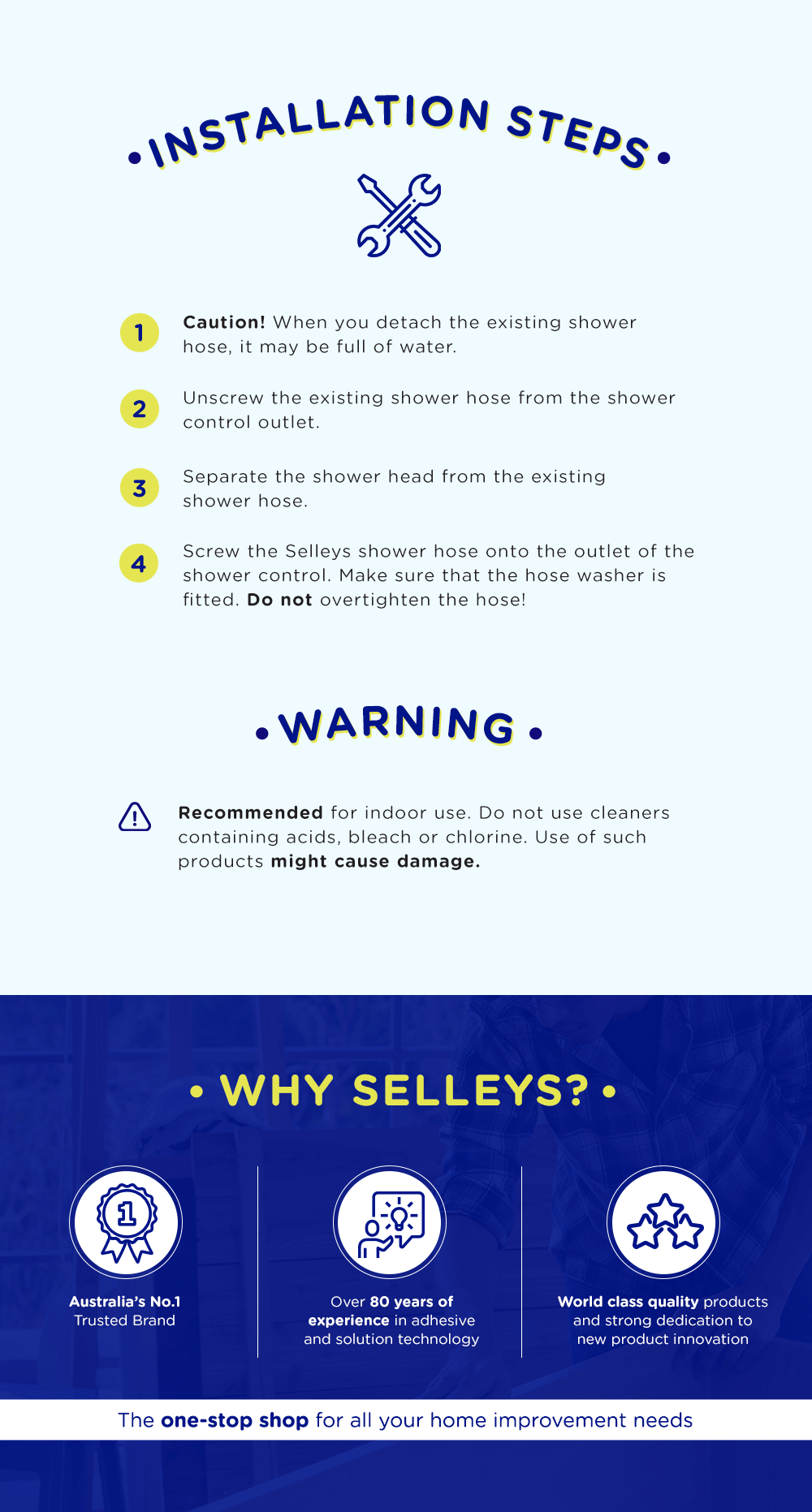 Selleys Heavy Duty Shower Hose is a heavy duty, durable hose that is rust resistant.